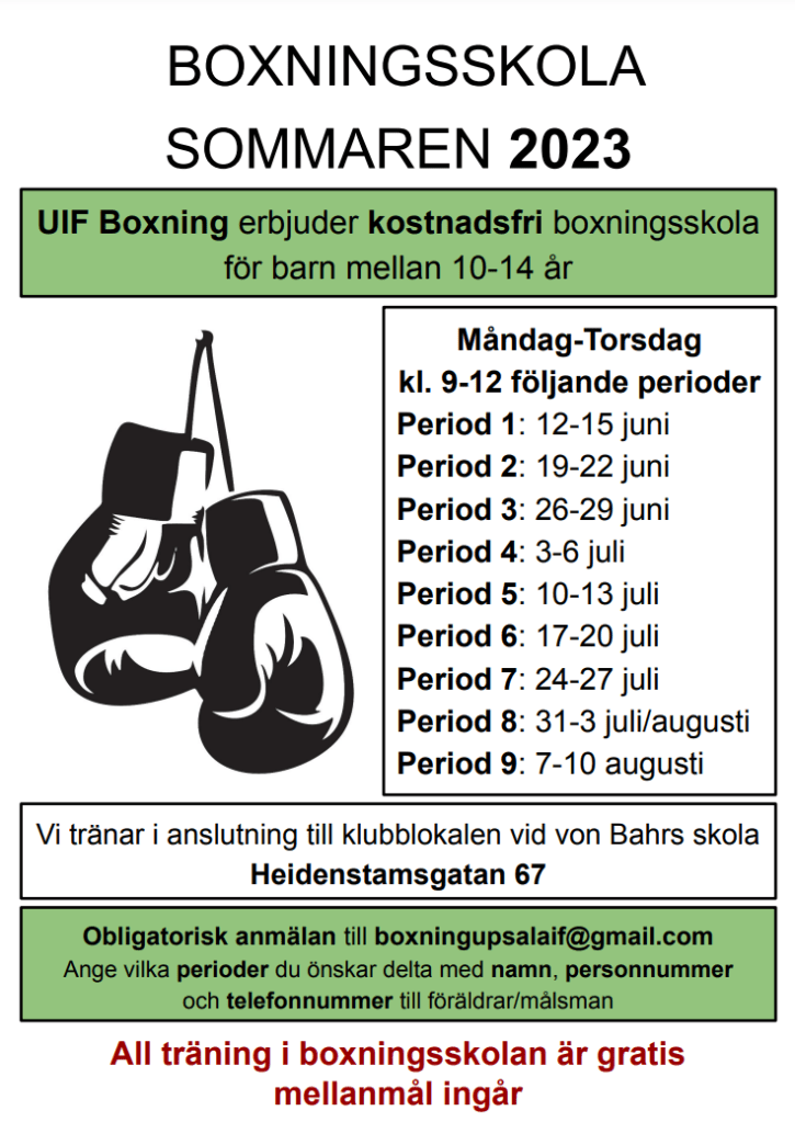 Boxningsskola sommaren 2023 Publicerat avlisakaati22 april, 202321 maj, 2023Publicerad iOkategoriserade Relaterade